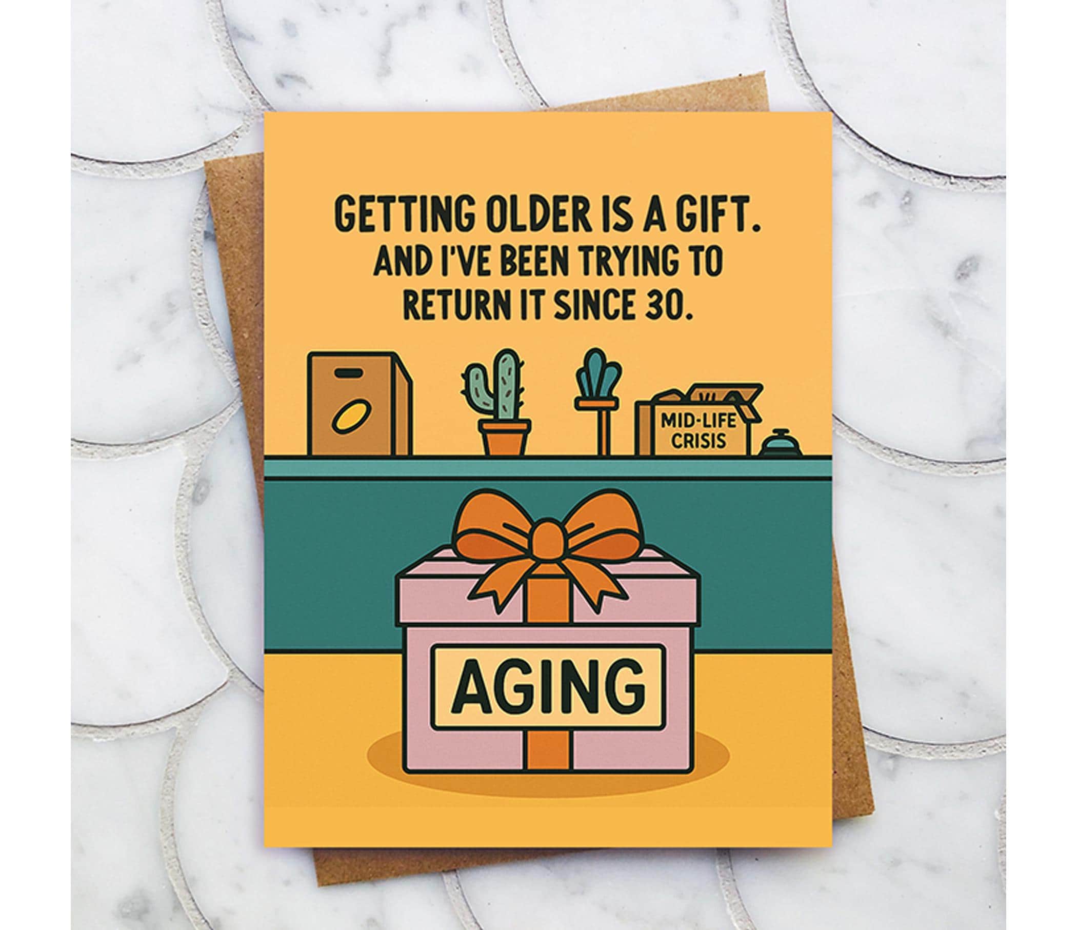 This cheeky birthday card is professionally printed on high quality card stock and comes with a fabulous kraft brown envelope. It is cut, folded and carefully packaged in-house.