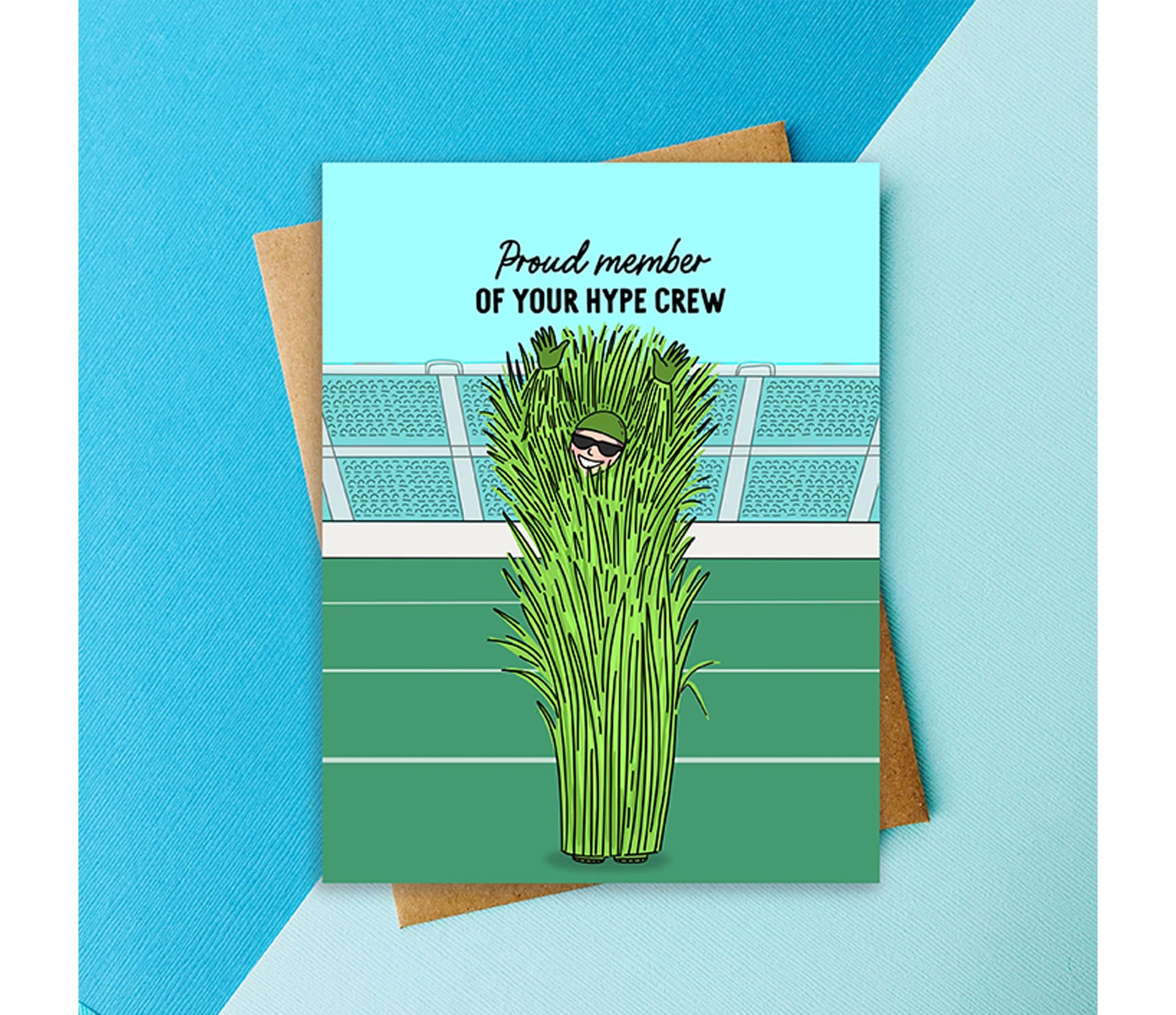 This cheeky card is professionally printed on the highest quality card stock and comes with a fabulous blue envelope. It is cut, folded and carefully packaged in-house.