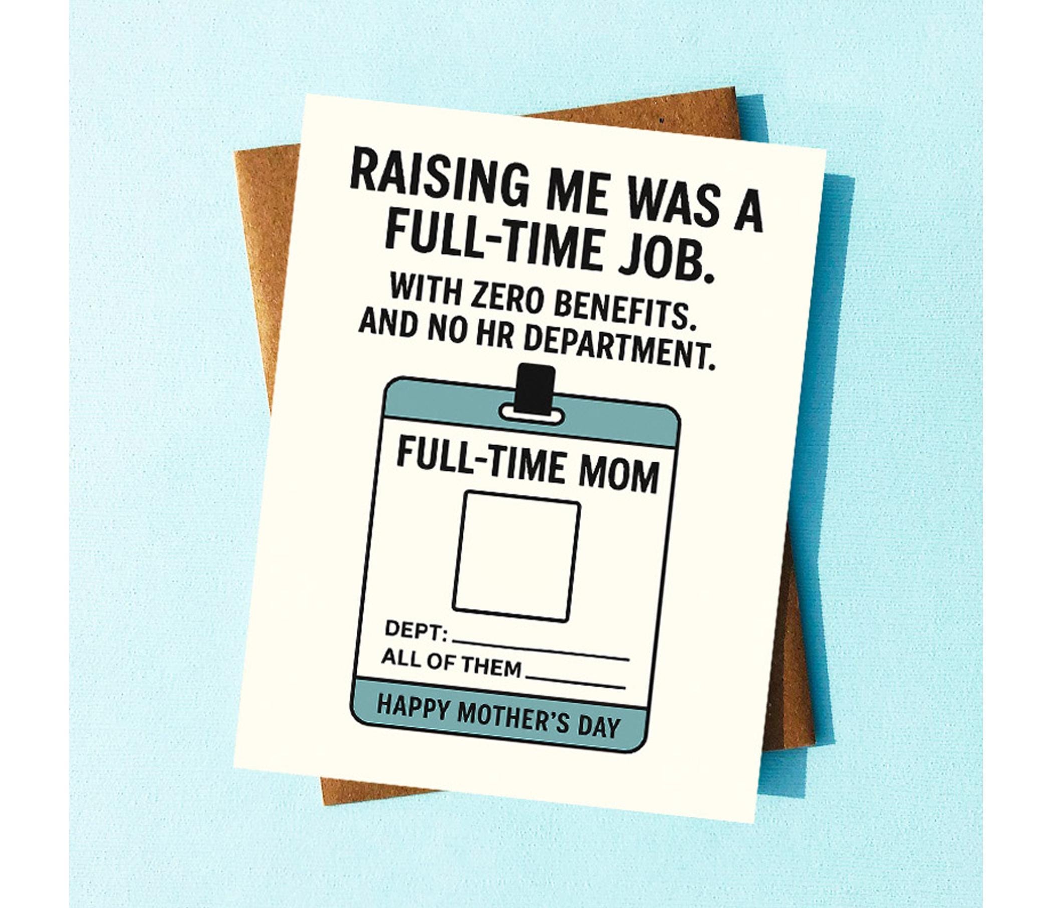 This cheeky card is professionally printed on high quality card stock and comes with a fabulous kraft brown envelope. It is cut, folded and carefully packaged in-house.