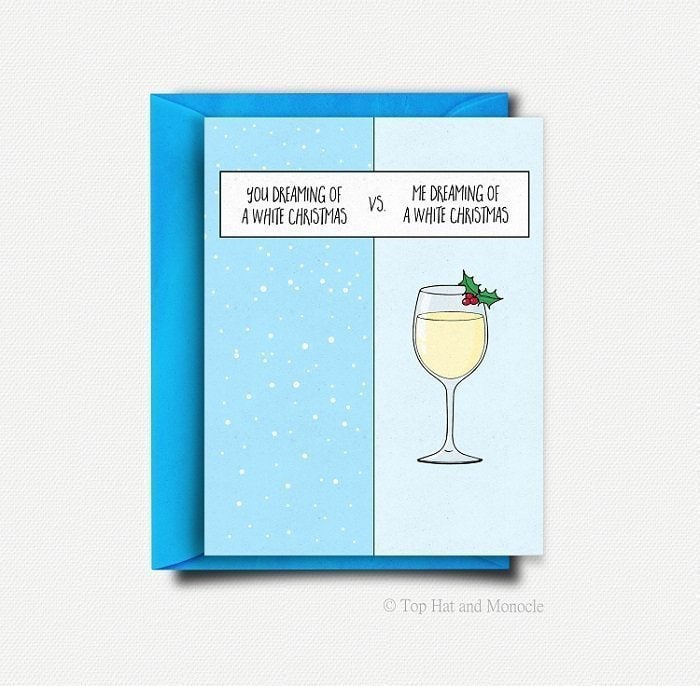 This cheeky Christmas card is professionally printed on high quality card stock and comes with a fabulous red envelope. It is lovingly cut, folded and carefully packaged in-house.